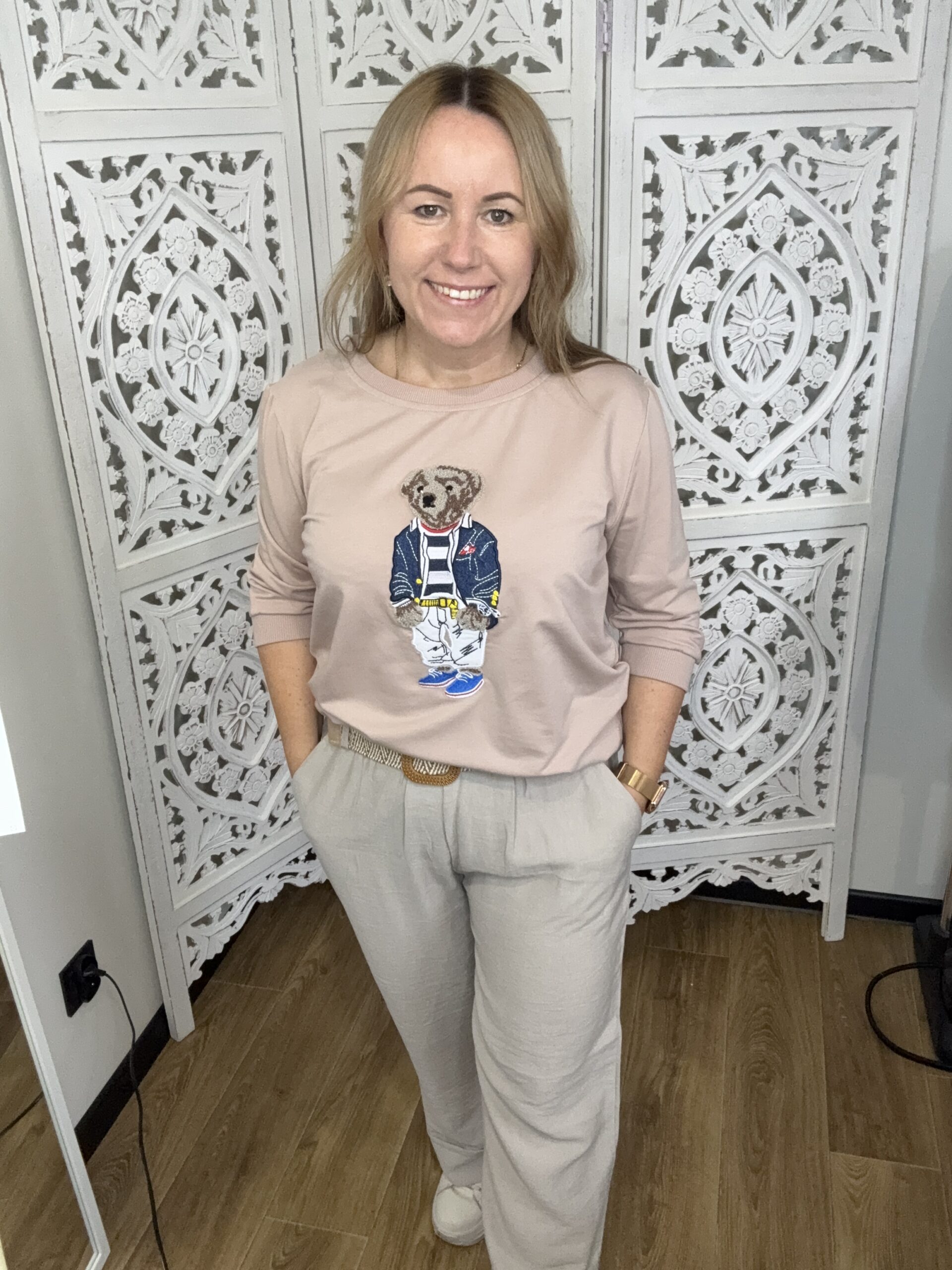 Stylowa bluza damska z efektowną aplikacją misia, wykonana z wysokiej jakości bawełny z dodatkiem elastanu. Idealna na co dzień i chłodniejsze dni.
