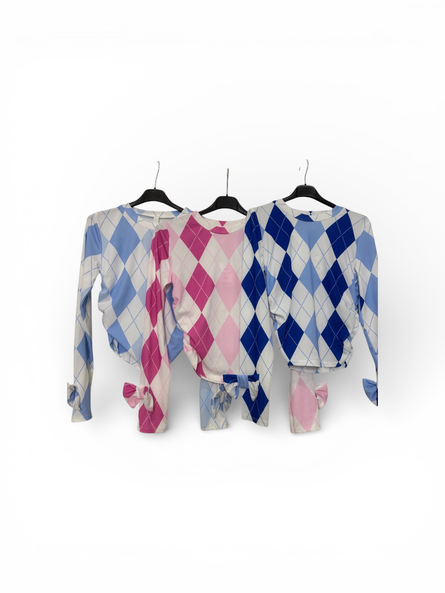 Bluzka damska w romby to propozycja dla kobiet, które lubią wyraziste wzory i świeże kolory. Geometryczny print przyciąga uwagę i nadaje stylizacji energii. Model doskonale sprawdzi się w sezonie wiosennym.