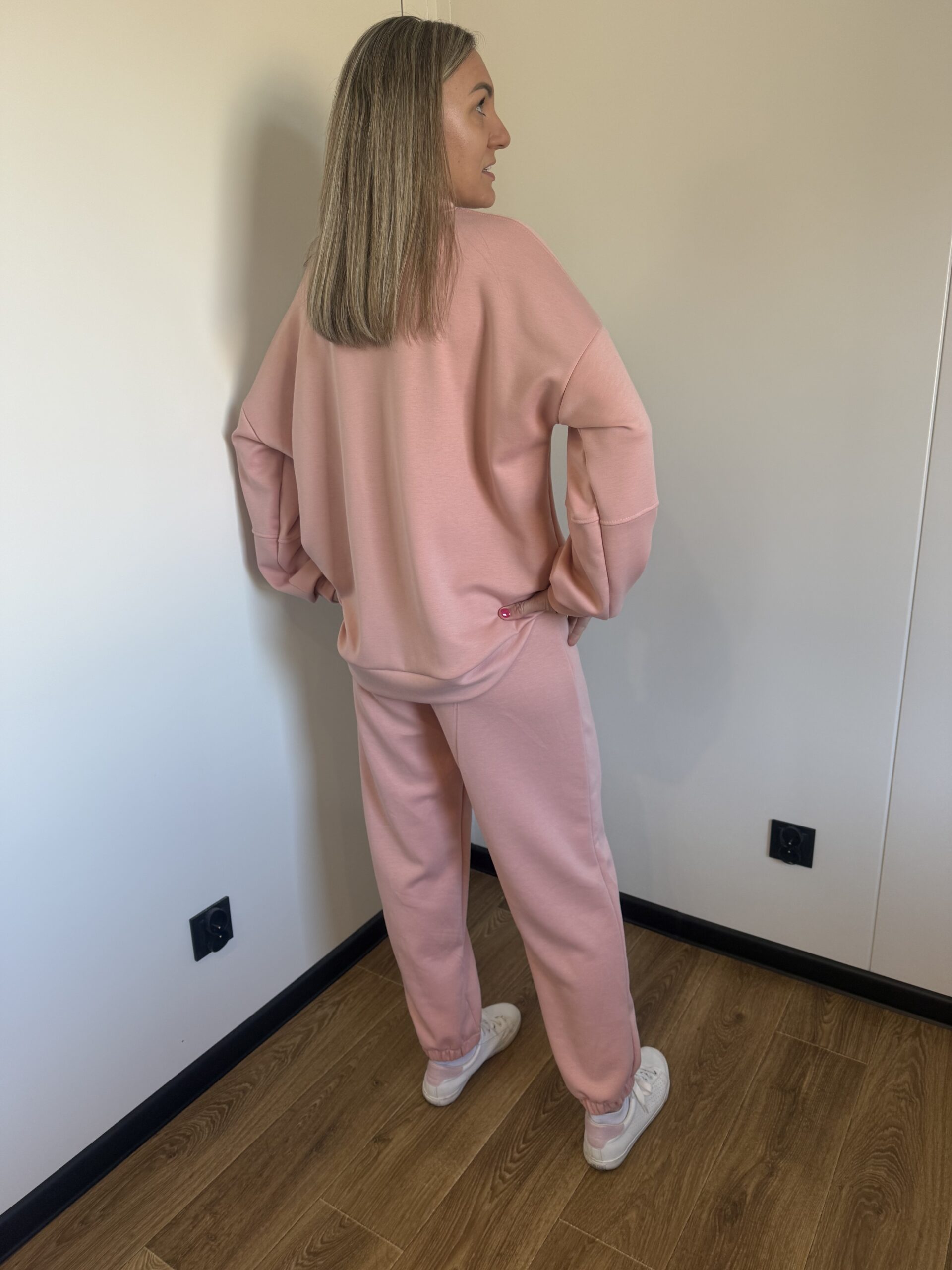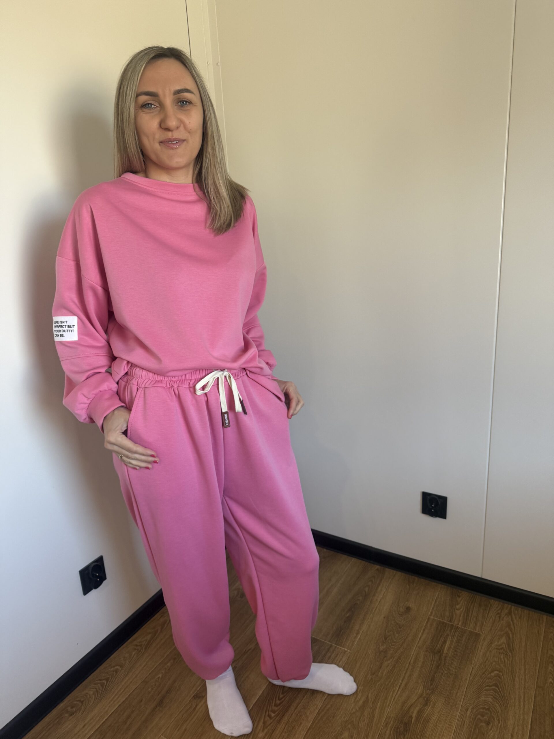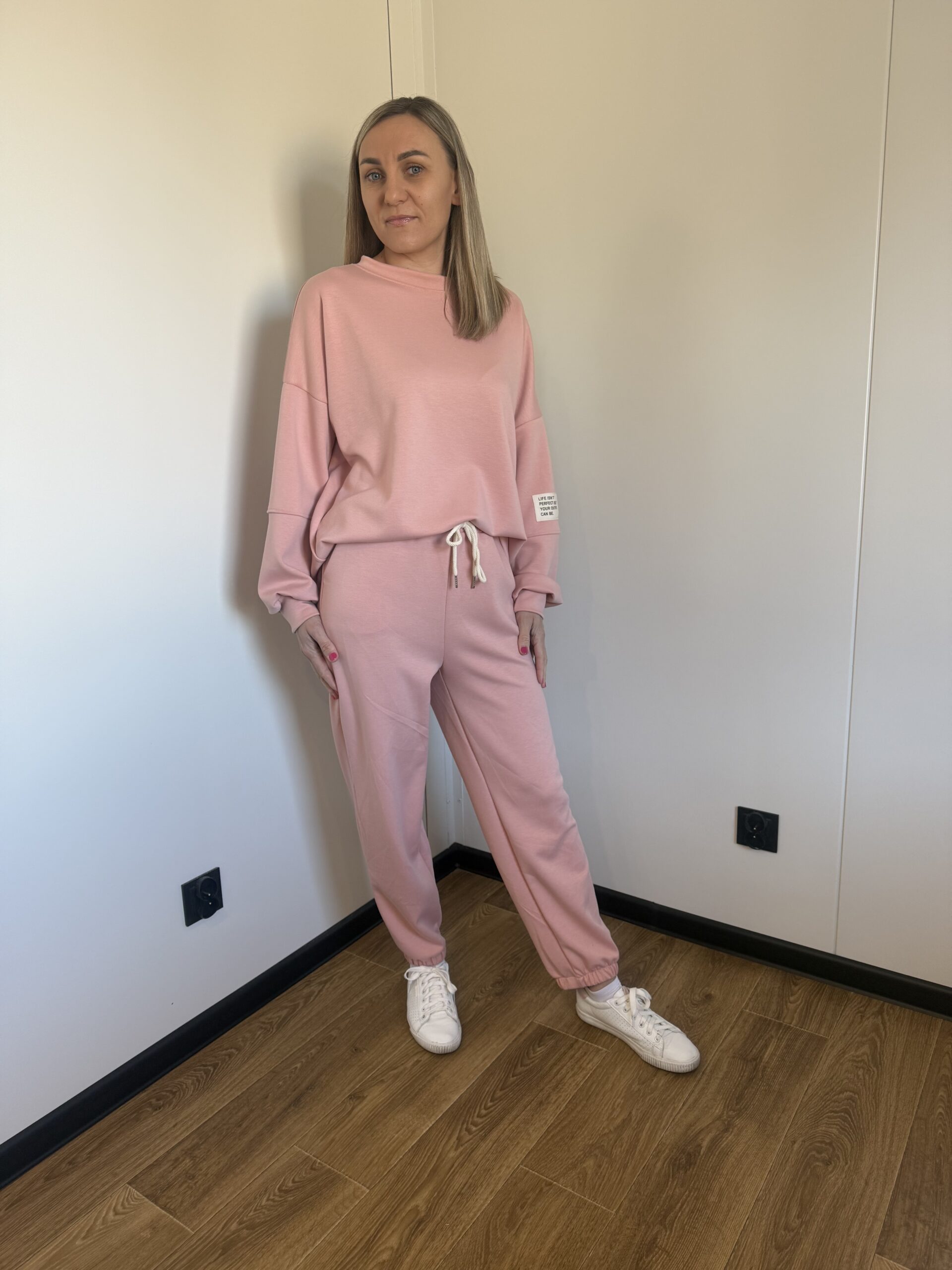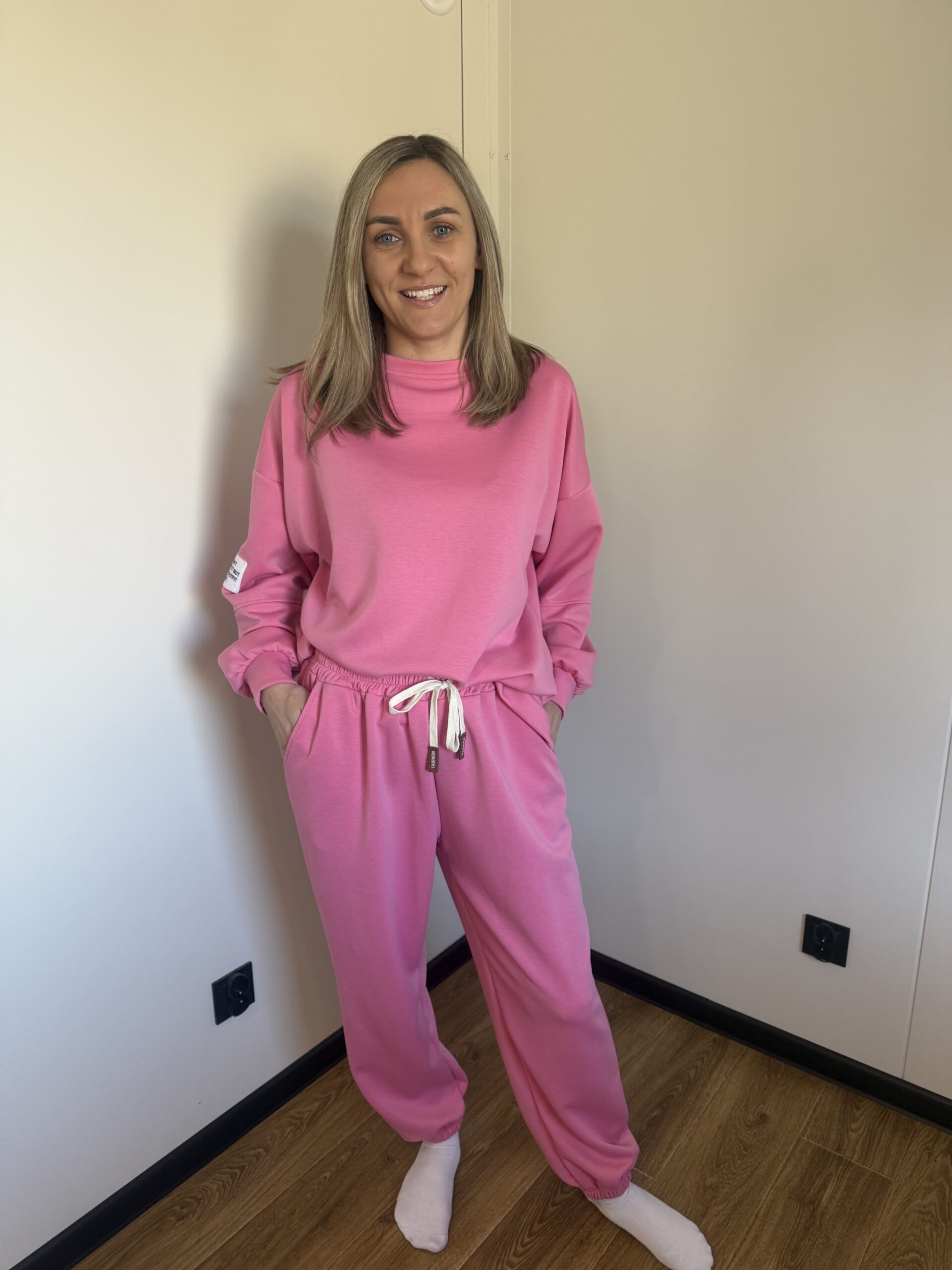 Ten komplet dresowy damski wykonany jest z miękkiej, przyjemnej w dotyku dzianiny typu masełko, która zapewnia komfort noszenia przez cały dzień.