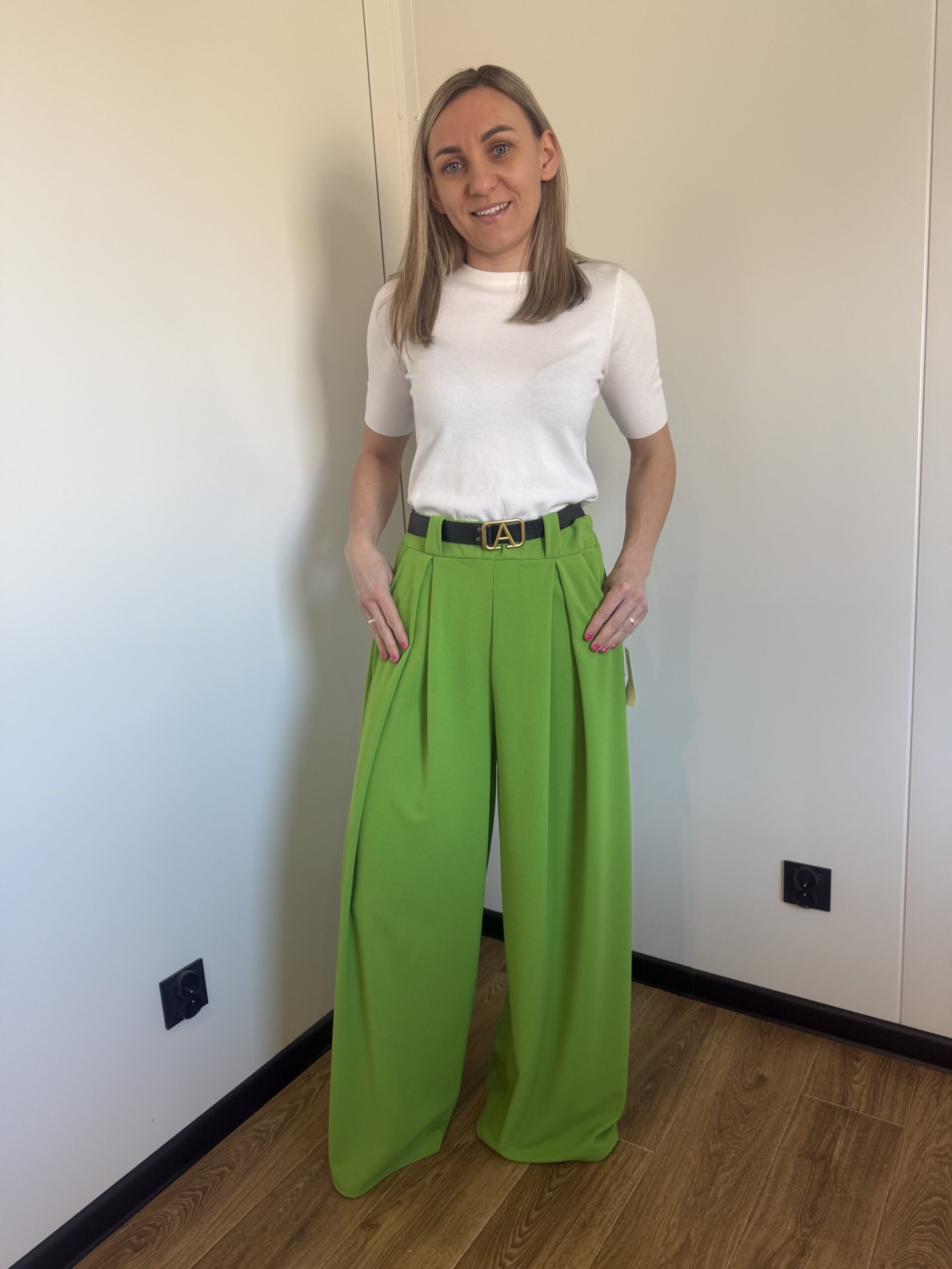 Spodnie sprawdzą się zarówno w eleganckich stylizacjach z koszulą lub body, jak i w codziennych zestawach z bawełnianą bluzką czy swetrem. W komplecie znajduje się pasek podkreślający talię.